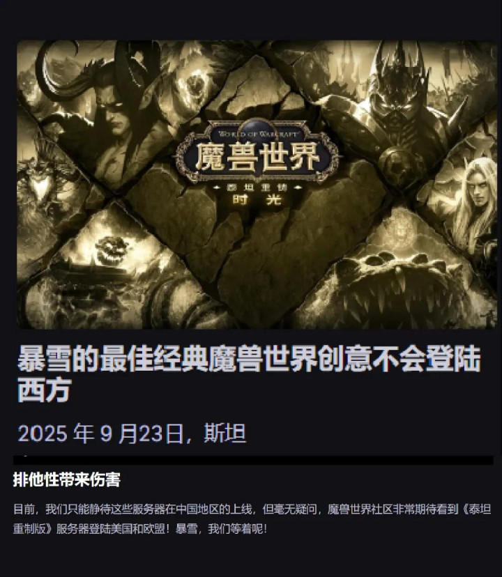 对于广大国服玩家而言,虽然乐见于泰坦服上线(已有120万玩家预约),但是也希望新plus服的开发进度不要耽误,毕竟有的玩家就是喜欢玩60版本,而不是WLK和它的各种换皮版本。