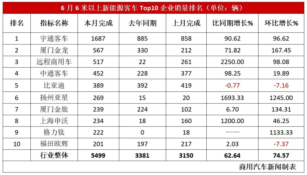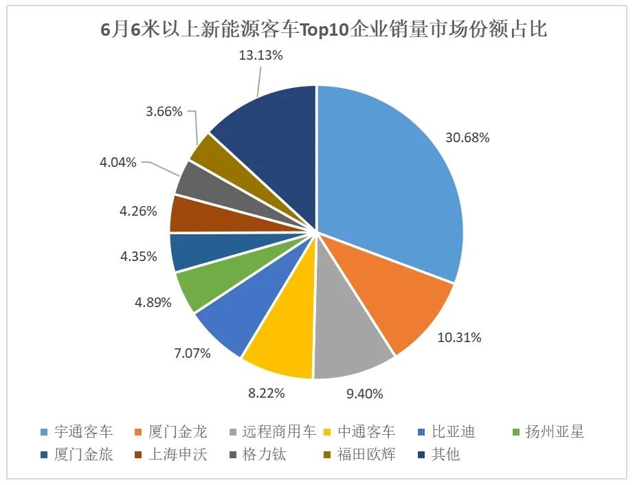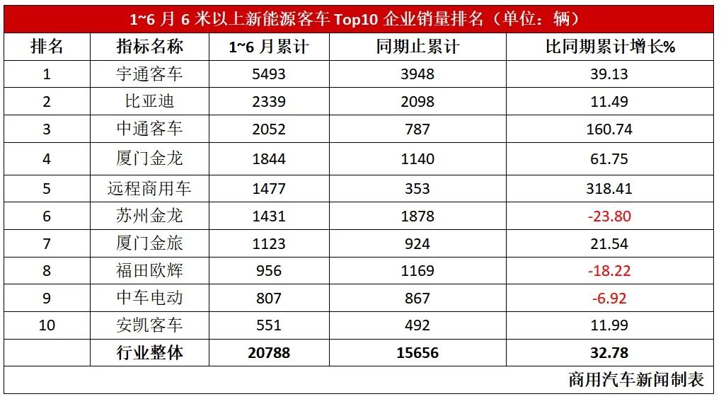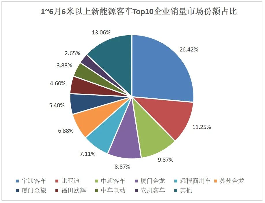 在6月销量强劲增长的助攻下,上半年,6米以上新能源客车也交出了亮眼的成绩单。